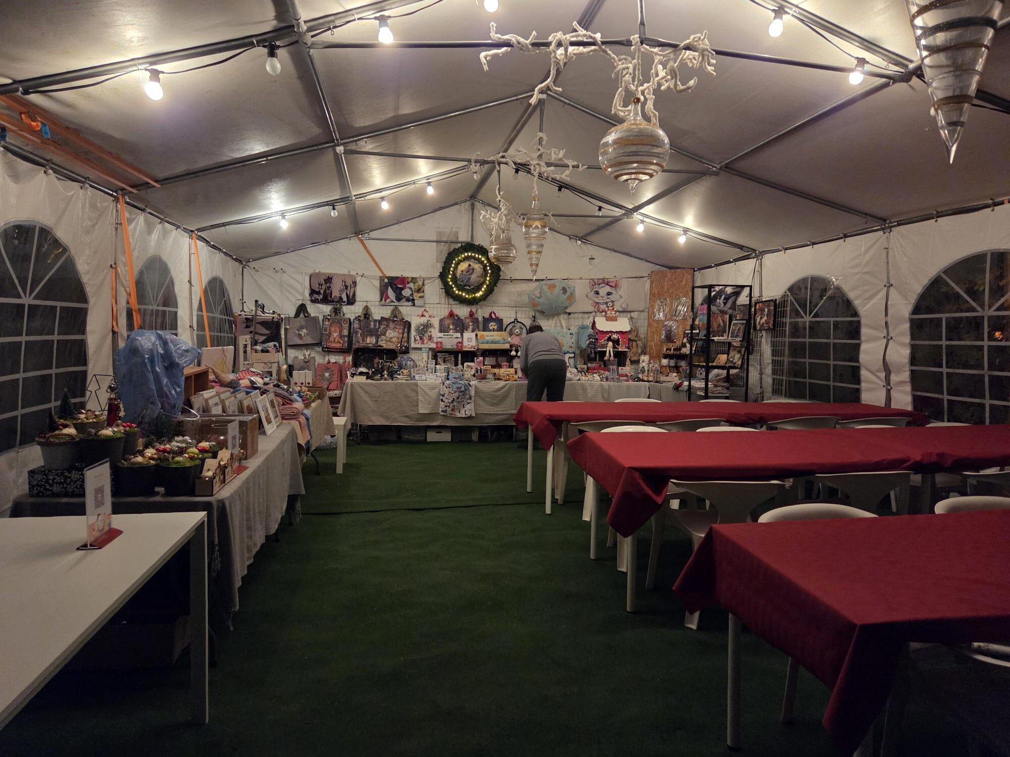 Naast vele originele cadeautjes kan je ook terecht voor een heerlijk warm of koud drankje, een winters soepje, een bakje friet, pannenkoek en zoveel meer… in de verwarmde tent of buiten rond de vuurkorven.