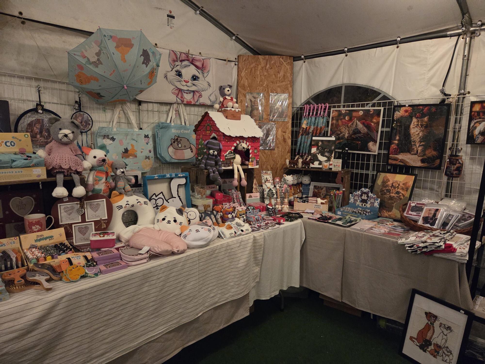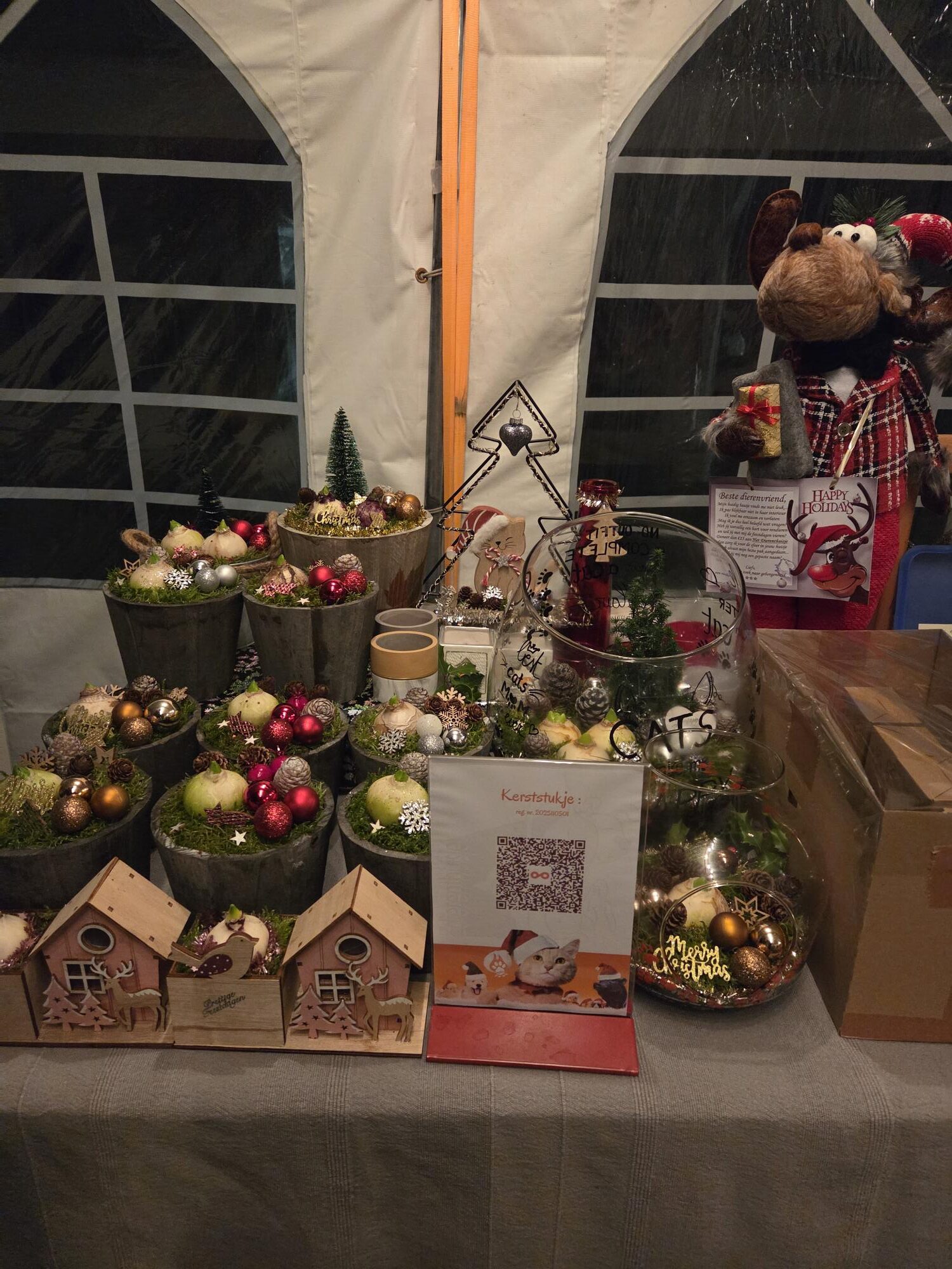 Ook de koopjestent staat overladen vol interessante artikelen voor Kerst en voor diertjes.