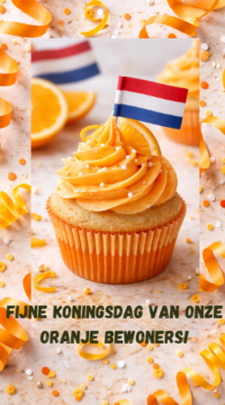 Fijne Koningsdag van onze oranje bewoners! 👑🎉 Geplaatst op 27-04-2026 (19-04-2026) door Petra Onze oranje bewonertjes wensen al onze trouwe volgers uit Nederland een fijne koningsdag!