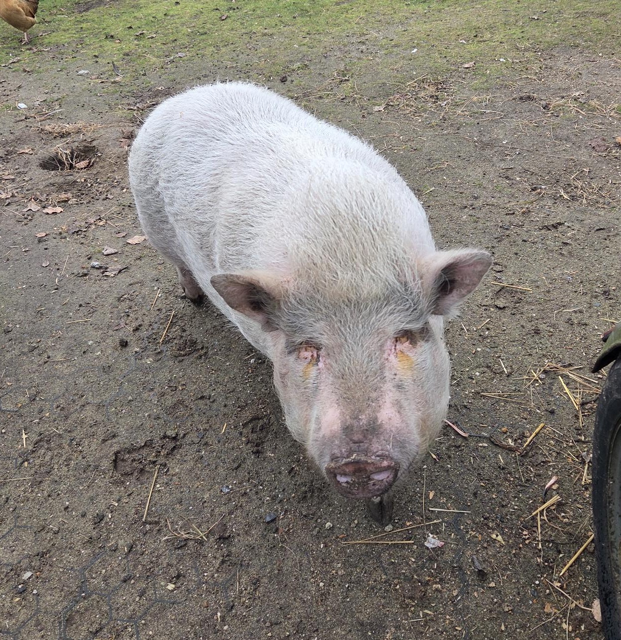 Sinds 10 februari 2026 vervoegen ze onze familie hoevedieren. Vanaf het eerste moment voelden ze zich thuis tussen de kippen, konijnen en schapen. Wel houden we hen gescheiden van de grotere varkens die op de achterste wei hun plek hebben. Die groepen zijn immers te territoriaal en daar zijn Berta en Sissi niet tegen opgewassen.