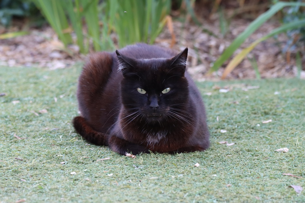 Black arriveerde op 6 mei 2020 en was toen zo goed als kaal. Hij was toen, aldus de eigenaar, amper een jaar oud en kwam van een zwerfplek waarvan meerdere poezen toekwamen. Black was sociaal maar kon op dat ogenblik niet herplaatst worden vanwege zijn medische toestand die toen nog onzeker was. Stelselmatig zagen we hem bekomen en uiteindelijk kreeg de jonge kater zijn vacht volledig terug. Hij straalde maar genoot zodanig van zijn vrije leventje in de groep dat hij meer afstand nam van mensen.