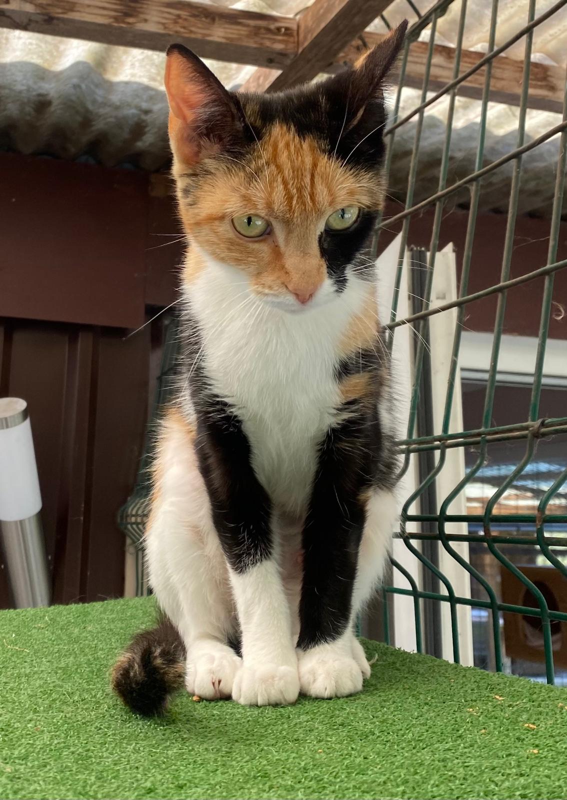 Cleo is een gesteriliseerde kattin, geboren ca 09/2023. Ze werd gedumpt nadat ze haar nestje had groot gebracht. Een enorme lieverd die hoopt eindelijk wat geluk te vinden. Ze zou het liefst een thuis vinden waar ze kan bekomen zonder de drukte van kleine kindjes. Een tuin weet ze zeker te appreciëren.