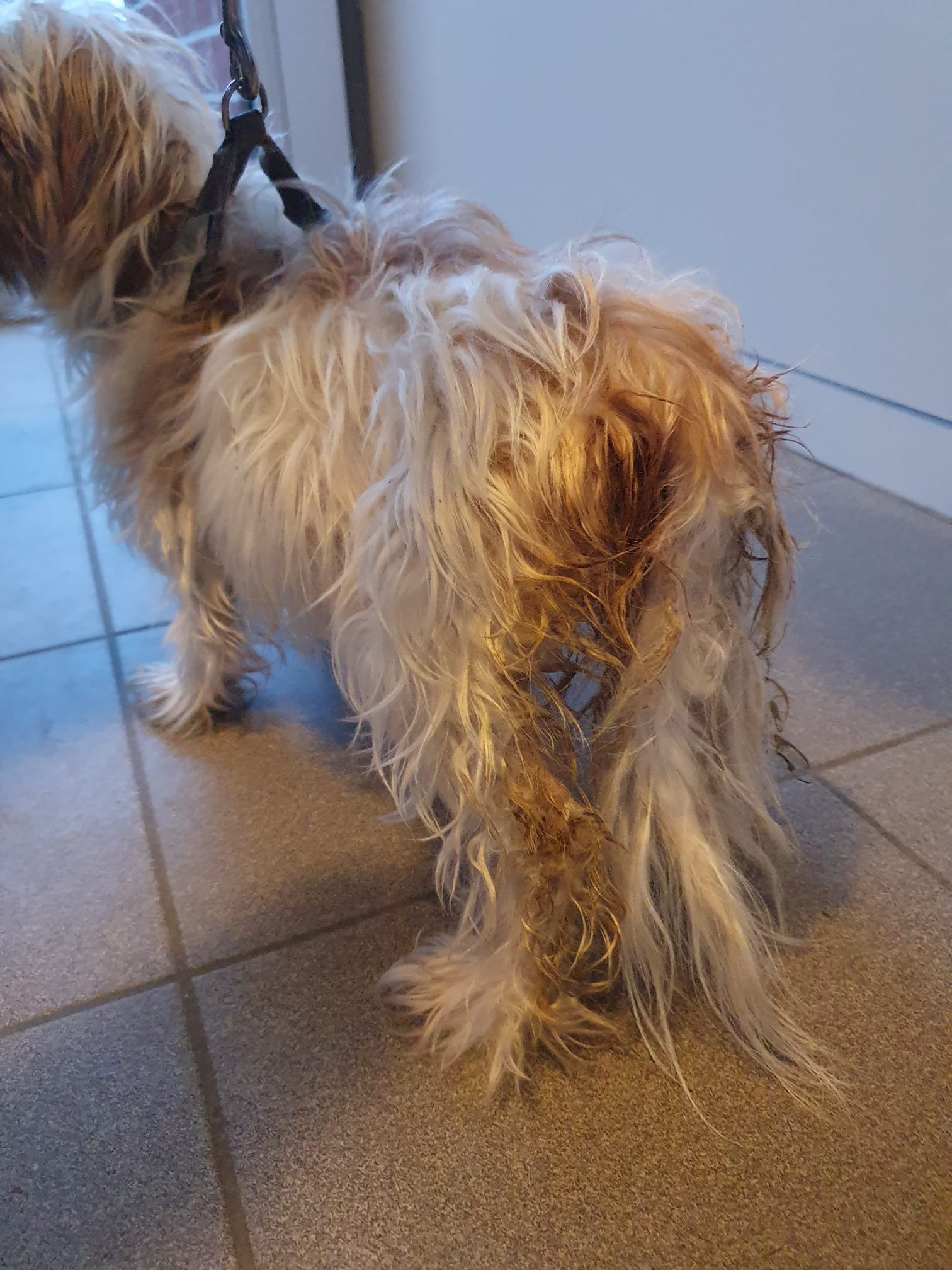 Dutske heeft haar naam niet gestolen maar helaas werd dit seniorhondje (12 jaar) lange tijd verwaarloosd. Volgens haar eigenaar die haar afstond bij een collega asiel heeft ze al zes maanden diarree en dat heeft haar volledig onderuit gehaald.
