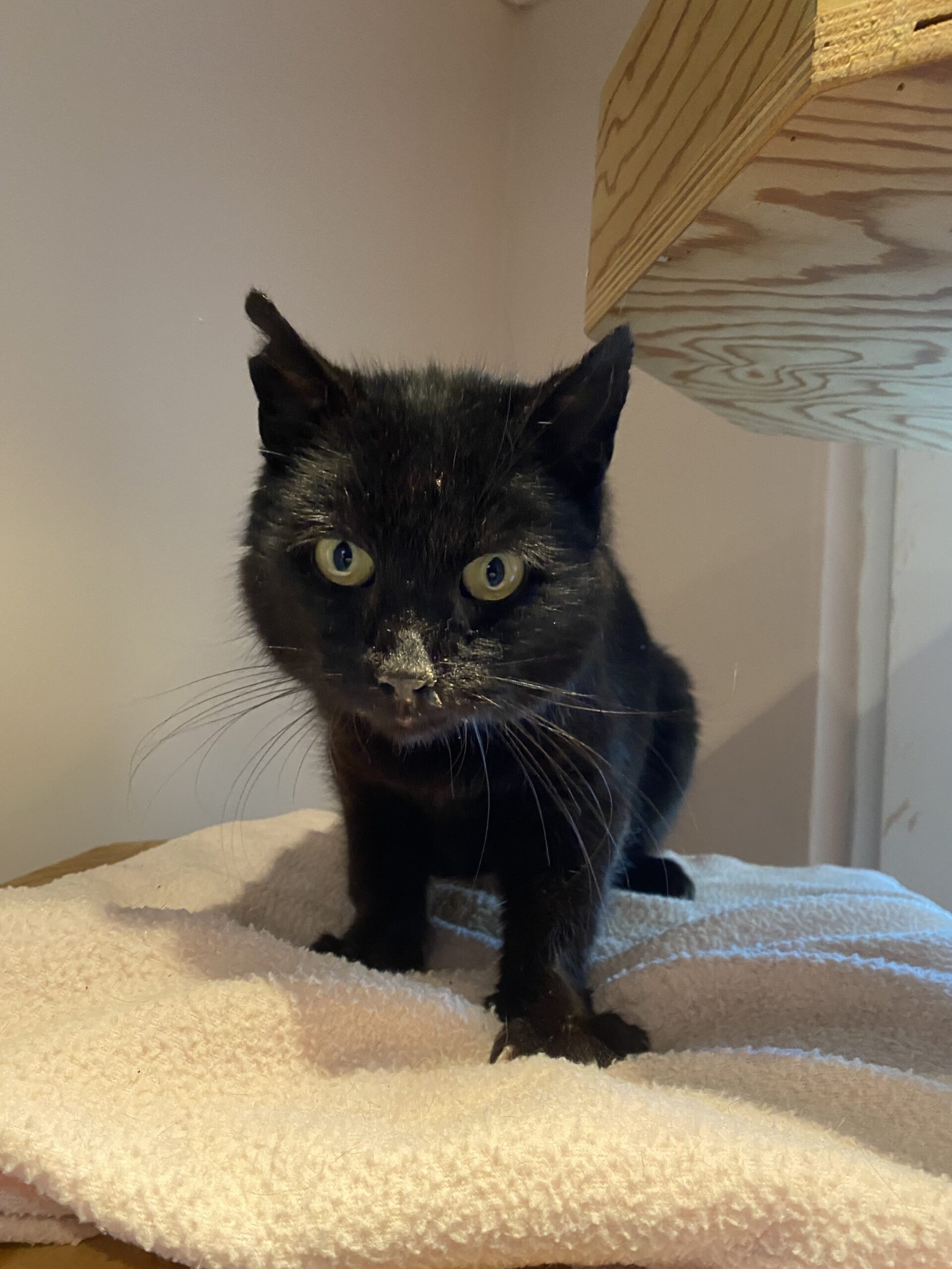 Femu is een zwerver die op een camping terecht kwam. Hij vond er een plekje samen met een lotgenoot en kreeg er eten en schuilplekjes aangeboden. Helaas werd Femu ziek en doordat er geen medicatie kon toegediend worden, werd zijn toestand steeds erger. Nu bleek dat Femu zich heel gewillig liet pakken wat maakte dat hij bij ons toekwam voor verzorging. Al gauw bleek dat dit ernstig was. De verkoudheid waarmee alles startte, zorgde nu ook voor erge kortademigheid. Omdat Femu alvast eerst medicatie nodig had om de ergste luchtwegproblemen te onderdrukken, hebben we ons daar alvast eerst op gericht. Wat de gevolgen voor zijn longetjes zullen zijn, zal nog moeten blijken. We hopen dat we binnen een weekje verdergaande onderzoeken kunnen laten doen. Momenteel zou dit teveel van hem vergen.