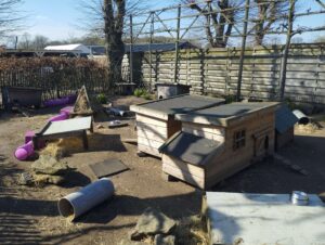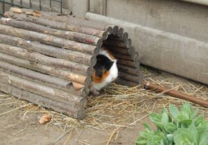In april 2021 omheinden we een terrein van 12m x 10m ‘caviaproof’ en plaatsten 2 grote huisjes die voor de diertjes vrij toegankelijk zijn. We maakten verstopplaatsjes, schaduwplekjes en plaatsten buizen waar ze door konden kruipen … Alles om er een echt paradijsje op aarde voor de cavia’s te creëren.