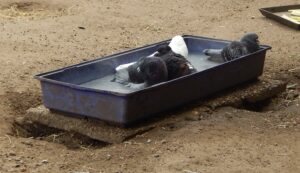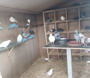 Het Dierenthuisje is ook een thuis voor een grote groep duiven van diverse pluimage. Er zijn ook witte sierduiven onder hen die wellicht werden losgelaten tijdens een huwelijk en die bij ons terecht kwamen in hun zoektocht naar voedsel en warmte. Al deze duifjes hebben een aparte duivenchalet waar ze in warme nestjes kunnen slapen, krijgen speciaal duivenvoer, badjes waar ze naar hartenlust in kunnen spetteren, … Kortom ook zij komen hier niets tekort.