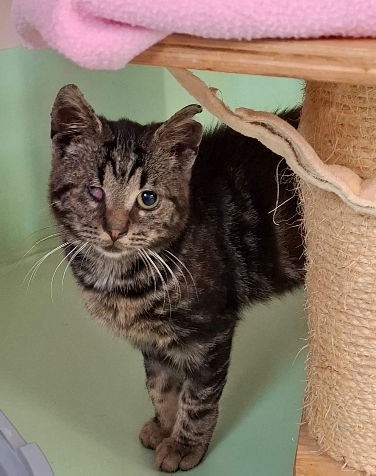 Het laatste wat nog moest gebeuren, was de verwijdering van zijn rechter oogje want dat was helaas helemaal verloren en zorgde voor nodeloze pijn. Verder krijgt hij enkel nog homeopathie om zijn immuunsysteem op peil te houden.