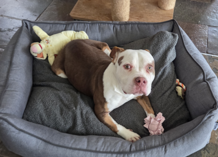 Zoey is een American Bully, geboren op 2 juli 2025. Ze is een gesteriliseerd teefje dat werd afgestaan wegens tijdsgebrek.