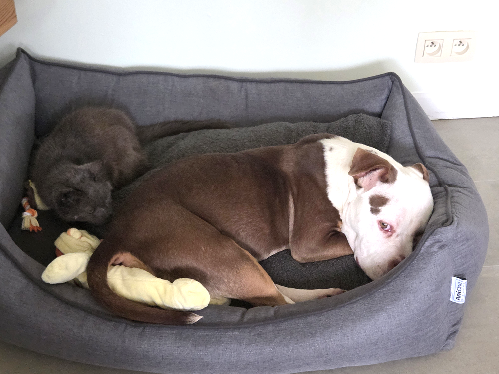 Vanaf het eerste moment dat ze hier toekwam, was ze sociaal naar de soortgenoten, poezen en mensen. Ze is enorm zachtaardig en voor een pup absoluut niet onstuimig.  Natuurlijk wil ze graag spelen, wandelen en knuffelen. Iets waar haar vorige eigenaar amper de tijd had en dat merk je.  Ze dringt zich niet op maar als je haar aandacht geeft, geniet ze daar volop van.